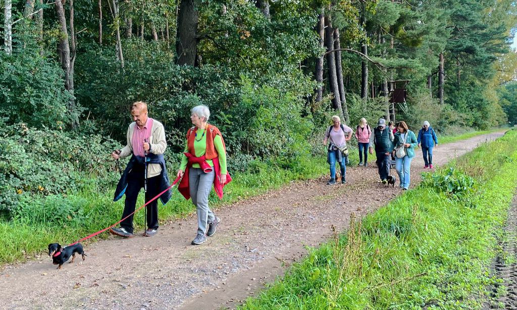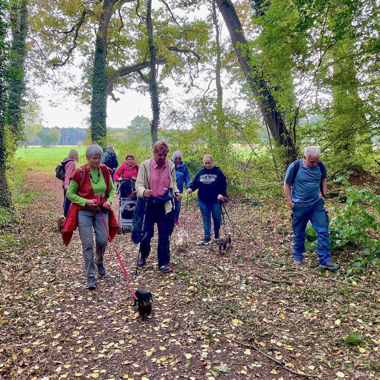 Bei sonnigem Herbstwetter begrüßte unser Vorsitzender Dieter Müller zahlreiche Mitglieder, unter ihnen auch einige neue Gesichter, mit ihren treuen Gefährten am "Wasserhaus" in Harthausen, um unter Führung von Willi Weiß durch den goldenen Herbstwald mit herrlichen dicken Eichen zu wandern. Auf den ebenen Wegen konnte auch unsere Rollstuhlfahrerin gut mithalten. Am "Kräutergarten" hatten Willi und Anita eine "Starkungsstation" mit Birnengeist, Rhabarberlikör und Brezeln aufgebaut. Danach gings zurück zum "Wasserhaus", wo sich alle bei deftigen Speisen und Getränken erholen konnten. Ein herrlicher Tag klang so gemütlich aus. Vielen Dank für die Bilder an Lutz Uther!