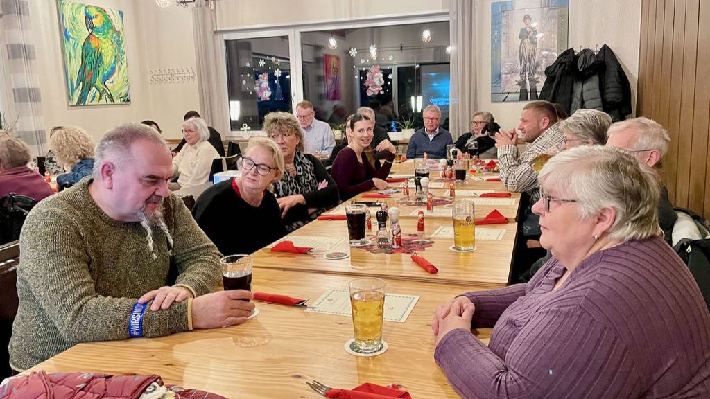 Gleichzeitig nutzte er die Gelegenheit, einen Wunsch für die Zukunft zu äußern: Er würde sich freuen, wenn sich noch mehr unserer Mitglieder aktiv in das Vereinsleben einbringen – sei es bei Veranstaltungen, in Arbeitsgruppen oder bei alltäglichen Aufgaben. Jede helfende Hand und jede kreative Idee sei wertvoll und trage dazu bei, dass unser Verein weiterhin so lebendig, herzlich und erfolgreich bleibt. Mit diesen Worten eröffnete er den Abend und stimmte uns auf ein gemütliches, fröhliches Miteinander mit dem ersten gesungenen Lied ein.
