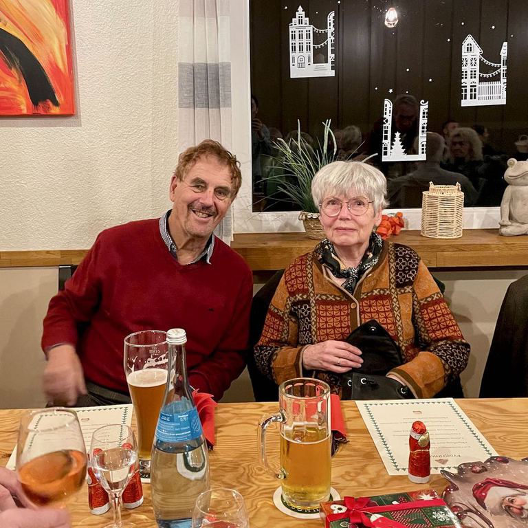Unsere Mitglieder Ursula und Joachim Keller begleiteten die gemeinsam gesungenen Weihnachtslieder mit Piano und Trompete und Marliese Schuster hielt wieder eine humorvolle Rede.