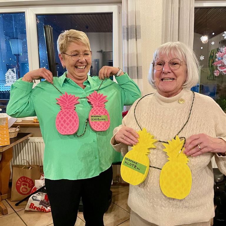 Für einen besonders humorvollen Moment sorgte Kay Mutschmann, der Anita und Sandra mit sehr speziellen Verweisscheiben in Form einer „Ananas“ überraschte – versehen mit den Decknamen Klotzi und Scheiblette. Diese Anspielung auf Kays sommerliches Staunen darüber, dass die „Verweisscheiben“ beim Training nun einmal dufttechnisch vorbereitet werden müssen – sprich: dicht am Körper oder auch mal im BH getragen werden, damit der Hund später den richtigen Körperduft erschnüffeln kann. Das löste wieder große Heiterkeit aus. Kein Wunder, denn die Vorstellung allein daran sorgt schon für beste Unterhaltung.