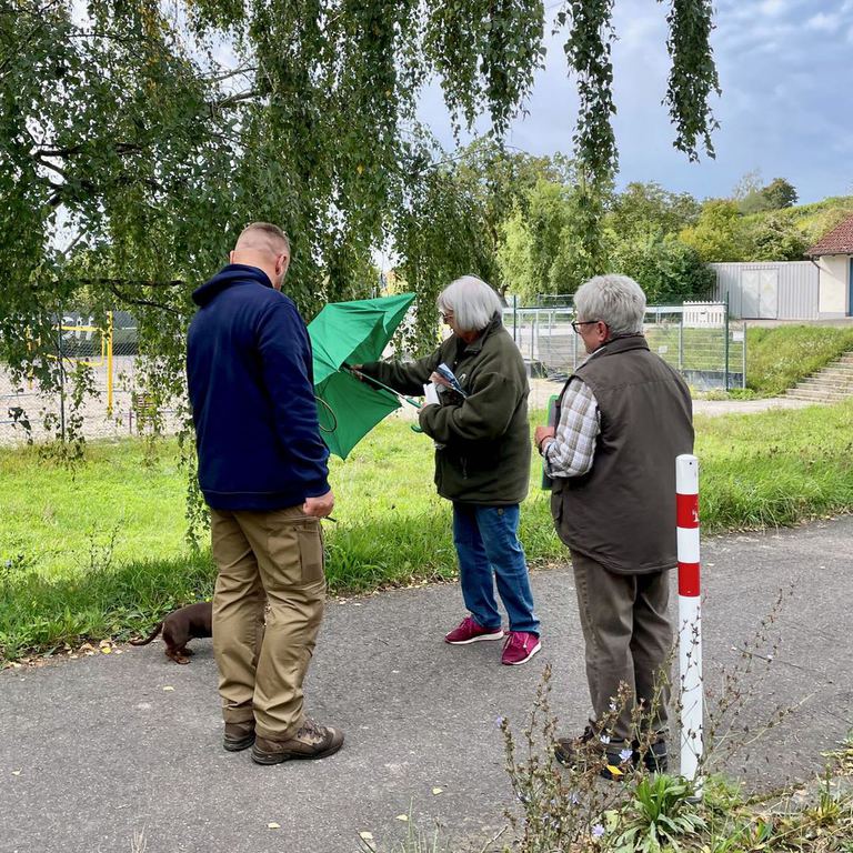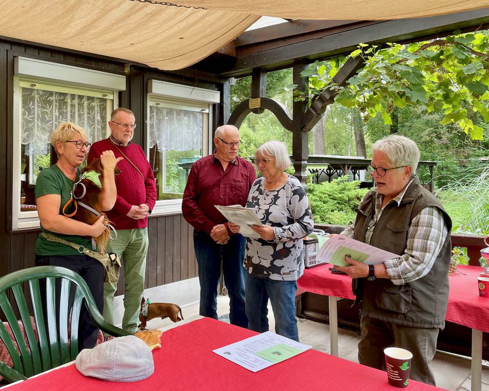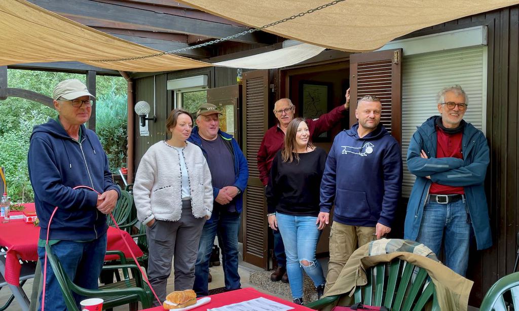 Der kalendarische Herbst hatte am 18. September noch nicht begonnen. Trotzdem war das Laub der Bäume schon herbstlich verfärbt, es wehte ein leichter Wind und nach einem anfänglichen eher trüben Frühmorgen schien rechtzeitig zum Veranstaltungsbeginn eine milde Sonne. Das Wetter wurde als ideale Bedingung für unsere Begleithundeprüfung empfunden und so haben dann auch am Ende aller Disziplinen alle angetretenen Gespanne erfolgreich abgeschlossen. In unserem Jubiläumsjahr, 40 Jahre Gruppe Römerberg im DTK, wurden wir bei Veranstaltungsbeginn mit Musikstücken der Jagdhornbläsergruppe der Kolpingfamilie Dudenhofen, unter der Leitung von Gerhard Hoffmann, eingestimmt und bekamen sogar eine Zugabe. Tische und Bänke waren herbstlich geschmückt, ein sehr schönes Ambiente, zusammen mit den Jagdhornbläsern, unseren Dackelhunden und dem baumbestandenen Areal des Hundeplatzes fast wie ein Postkartenmotiv. Und die Menschen? Allen voran unsere beliebte und hochgeschätzte Richterin, Frau Gisela Hähnle! Vielen Dank an sie, die sich wegen der verschiedenen, vielfältigen Prüfungselementen sehr viel Zeit nahm, Ausdauer zeigte und erst am späten Nachmittag mal etwas Essen und Trinken konnte. Ihre zu prüfenden Hunde neben ihren Führerinnen und Führern standen im Vordergrund und waren ihr wichtig. So auch beim Ausrichterteam und der gastronomischen Betreuung. Wir waren personell erheblich eingeschränkt und mit großer Anstrengung, jeder an seinem Platz, lief es trotzdem rund, bis zum Schluss. Dafür muss ausdrücklich DANKE gesagt werden. Danke auch für die Kuchenspenden. Nach kurzen Willkommensworten durch den Obmann für die Öffentlichkeitsarbeit in Vertretung des erkrankten 1. Vorsitzenden und dem anmoderieren der Jagdhornbläser, hielt die Verbandsbürgermeisterin der Gemeinde Römerberg-Dudenhofen, Frau Silke Schmitt-Makdice, eine sehr nette Begrüßungsrede. Frau Schmitt-Makdice zeigte sich dann auch am weiteren Tagesablauf und bei den Prüfungen sehr interessiert und blieb sehr lange Zeit unser Gast. Danke dafür, dass sie unserer Einladung gefolgt ist. Gisela Hähnle leitete dann in ihrer routinierten Art das Prüfungsgeschehen ein, mit erklärenden und helfenden Worten, damit die Nervosität bei den menschlichen Prüflingen dann doch nicht zu groß wurde. Von der Prüfungsleitung wurden die nachfolgenden Ergebnisse wie folgt zusammen gefasst: